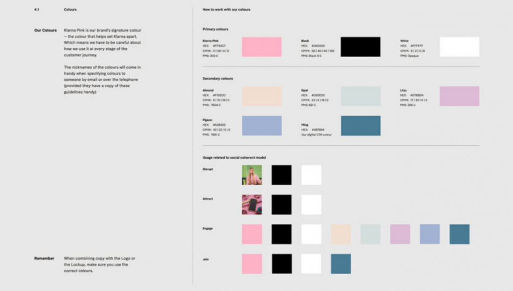 其品牌手冊的文字部分甚至包括一個(gè)決策樹,幫助用戶確定何時(shí)使用“科技能源品牌”——一個(gè)抓住 Klarna 精髓的諷刺性拼寫錯(cuò)誤。