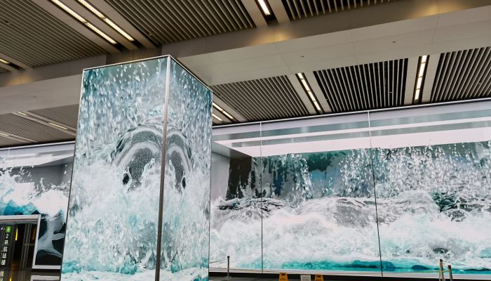 機場品牌設計的宣傳在這里體現了一個品牌的多媒體動畫效果在機場有不同類型的廣告,如何突出我們的廣告目的呢?在這里利用最新的科技,把LED的點陣模式覆蓋整面墻體的設計動畫通過整體形同的動畫形式,機場品牌設計形成大面積的LED屏幕,這樣就會體現強大的震撼力和影響力。